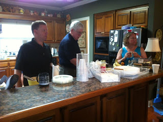Breakfast on Saturday morning. John, David and Laura. David did the cooking and cleaning this weekend.