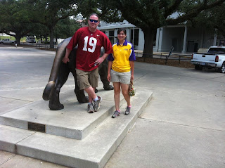 We are a divided family. John graduated from LSU and Michael from Alabama. Here's Michael and Meghan and Michael is espressing his feelings for LSU. Yes, they are there!